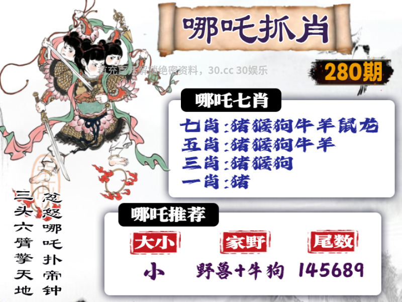 280期: ①七肖中特:猪猴狗牛羊鼠龙 ③家野+2肖:野兽+牛狗 |
